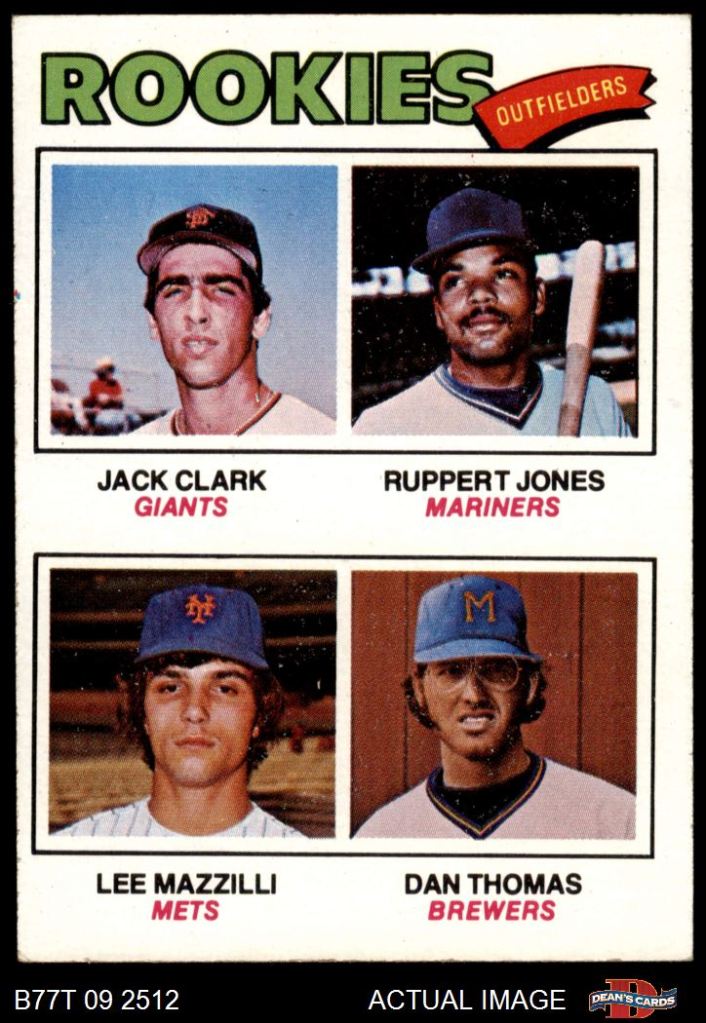You have this Italian Stallion looks like a Tiger Beat poster… Jones looks like he’s posing for a Seattle tourism brochure, or perhaps marketing showcasing really crappy hats… Clark is staring into the middle distance like he’s imagining the pitcher he’s about to ruin. And Dan Thomas.