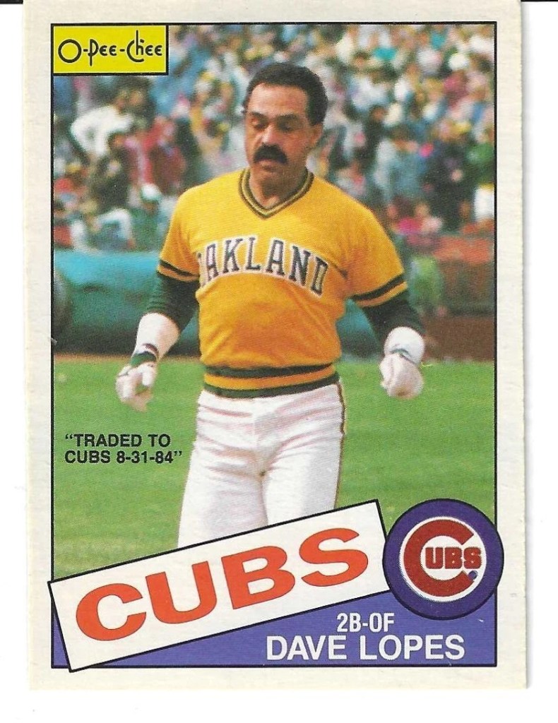 Anyway, as much as I disliked O’Pee’Chee products, they had a simple solution which didnt fit into the money grab Traded Sets that Topps did. In the example below is a very poor attempt to alter what was obviously a 1985 photo of Tom Seaver on the White Sox. I would rather they just wrote in marker next to the SOX on his Chicago hat the word “Red” as opposed to this. Also is that faded part intentional? If anything it just calls more attention to how bad it is. And 2nd is the OPC card I had for Davey Lopes. This made sense to me.